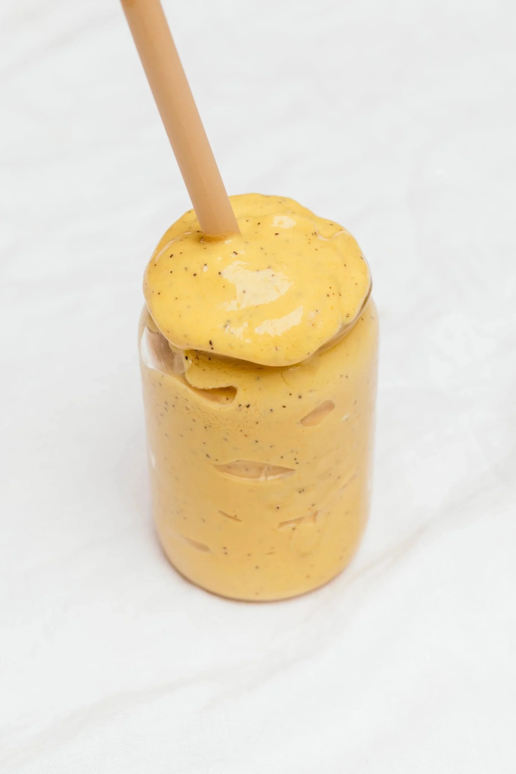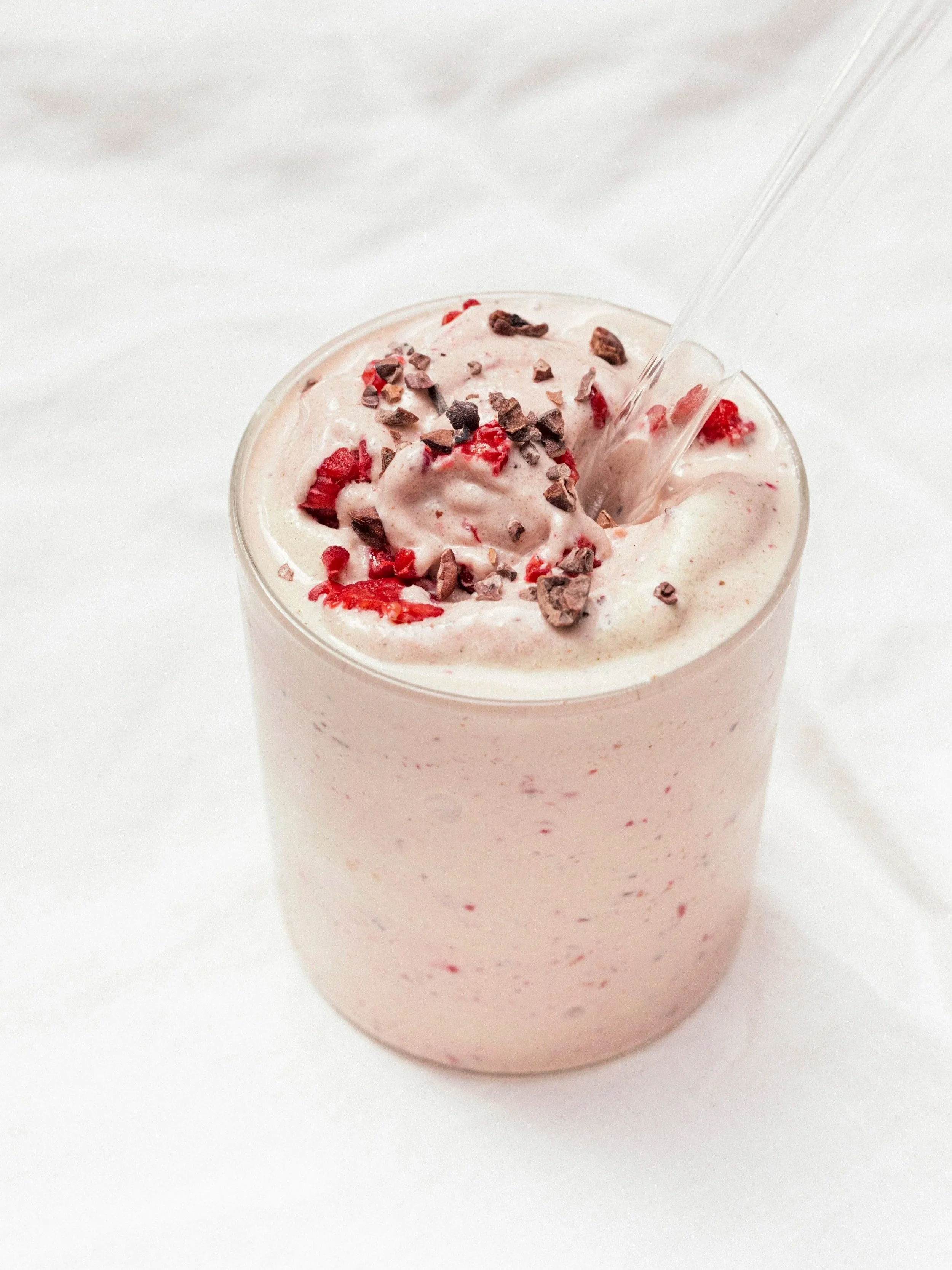 Add all of the ingredients into a blender and blend until thick and smooth.